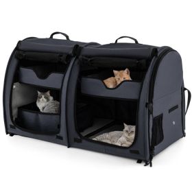 Double Compartment Pet Carrier with 2 Removable Hammocks (Color: Black)